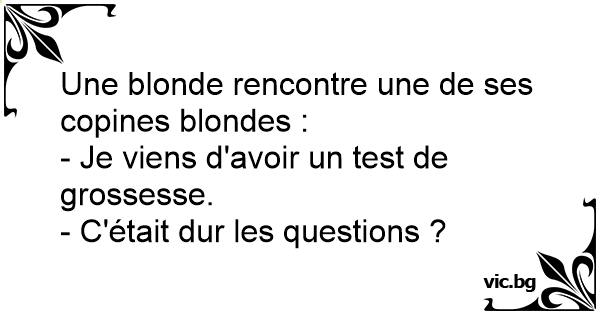 Une blonde rencontre une de ses copines blondes : - Je viens d'avoir un test de grossesse. - C'était dur les questions ?