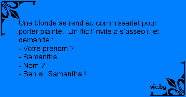 Une blonde se rend au commissariat pour porter plainte. Un flic l’invite à s’asseoir, et demande :