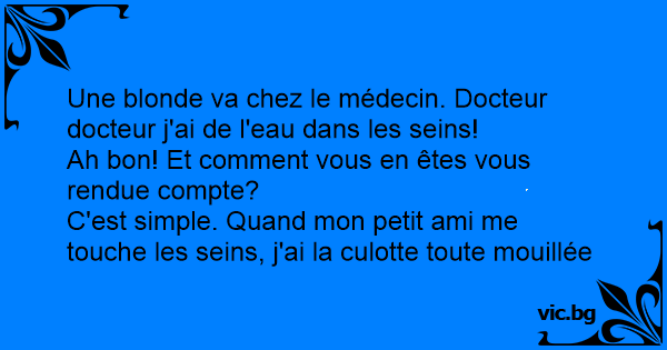 Une blonde va chez le médecin. Docteur docteur j'ai de l'eau dans les seins!