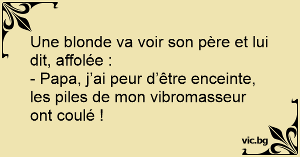 - Papa, j’ai peur d’être enceinte, les piles de mon vibromasseur ont coulé !