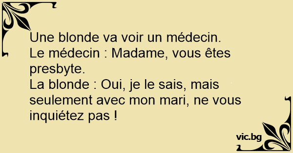 Le médecin : Madame, vous êtes presbyte.