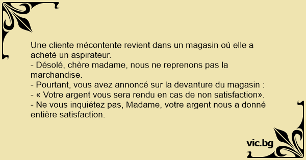 - Désolé, chère madame, nous ne reprenons pas la marchandise.
