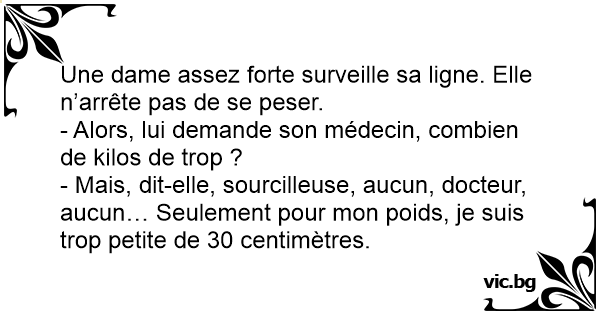 Une dame assez forte surveille sa ligne. Elle n’arrête pas de se peser.