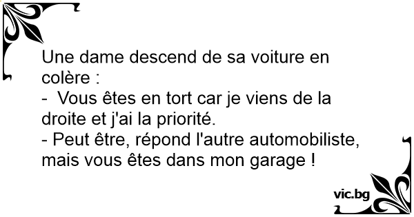 - Peut être, répond l'autre automobiliste, mais vous êtes dans mon garage !