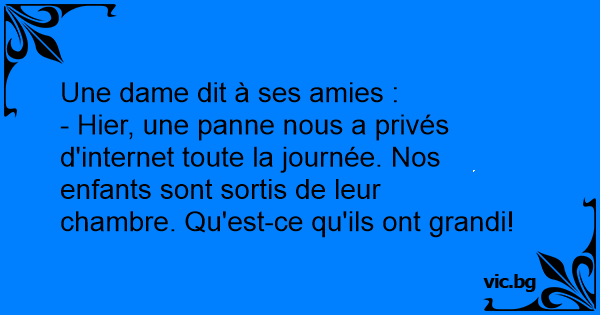 - Hier, une panne nous a privés d'internet toute la journée. Nos enfants sont sortis de leur chambre. Qu'est-ce qu'ils ont grandi!