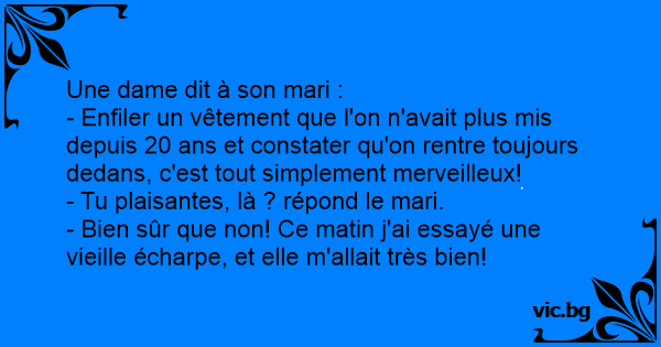 - Enfiler un vêtement que l'on n'avait plus mis depuis 20 ans et constater qu'on rentre toujours dedans, c'est tout simplement merveilleux!