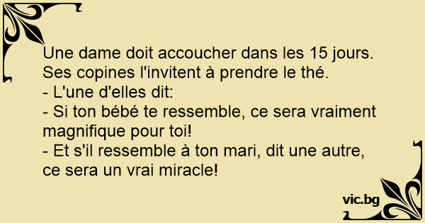 - Et s'il ressemble à ton mari, dit une autre, ce sera un vrai miracle!