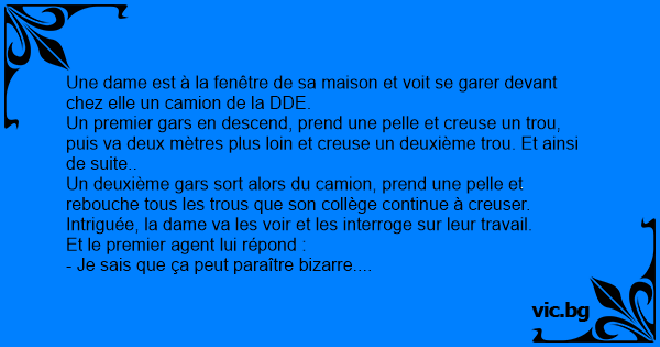 Un deuxième gars sort alors du camion, prend une pelle et rebouche tous les trous que son collège continue à creuser. Intriguée, la dame va les voir et les interroge sur leur travail.