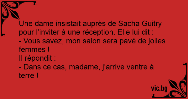 Une dame insistait auprès de Sacha Guitry pour l’inviter à une réception. Elle lui dit :