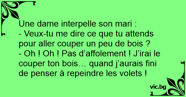 - Oh ! Oh ! Pas d’affolement ! J’irai le couper ton bois… quand j’aurais fini de penser à repeindre les volets !