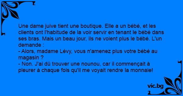 - Alors, madame Lévy, vous n'amenez plus votre bébé au magasin ?