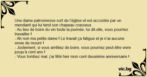 - Justement, si vous arrêtiez de boire, vous pourriez peut-être vivre jusqu’à cent ans !