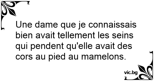 Une dame que je connaissais bien avait tellement les seins qui pendent qu'elle avait des cors au pied au mamelons.