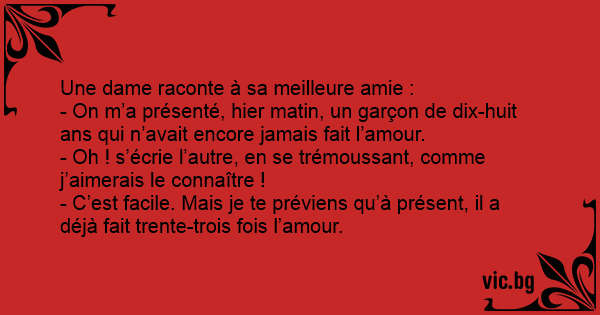 - C’est facile. Mais je te préviens qu’à présent, il a déjà fait trente-trois fois l’amour.
