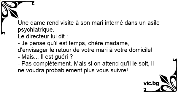 - Je pense qu'il est temps, chère madame, d'envisager le retour de votre mari à votre domicile!