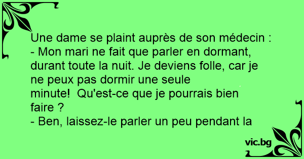 - Mon mari ne fait que parler en dormant, durant toute la nuit. Je deviens folle, car je ne peux pas dormir une seule minute! Qu'est-ce que je pourrais bien faire ?