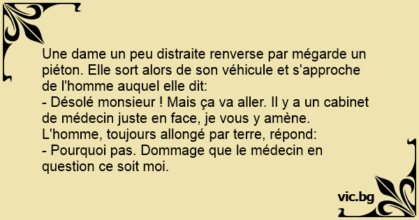 - Désolé monsieur ! Mais ça va aller. Il y a un cabinet de médecin juste en face, je vous y amène.