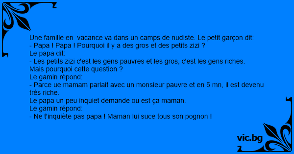 - Les petits zizi c'est les gens pauvres et les gros, c'est les gens riches.