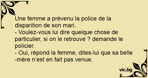 - Oui, répond la femme, dites-lui que sa belle-mère n’est en fait pas venue.