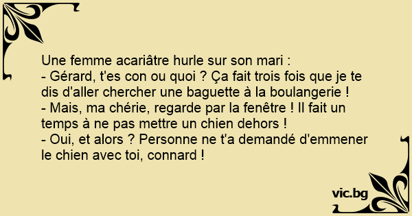 - Gérard, t'es соn ou quoi ? Ça fait trois fois que je te dis d'aller chercher une baguette à la boulangerie !