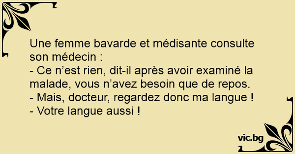 Une femme bavarde et médisante consulte son médecin :