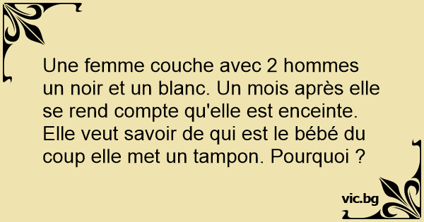 Une femme couche avec 2 hommes un noir et un blanc. Un mois après elle se rend compte qu'elle est enceinte. Elle veut savoir de qui est le bébé du coup elle met un тамроn. Pourquoi ?