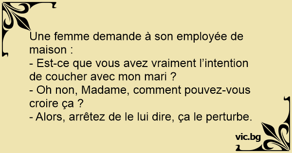 - Est-ce que vous avez vraiment l’intention de coucher avec mon mari ?