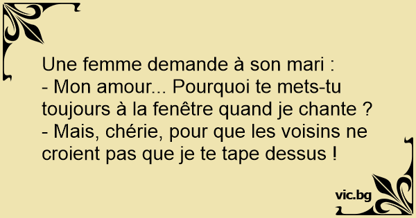 - Mais, chérie, pour que les voisins ne croient pas que je te tape dessus !