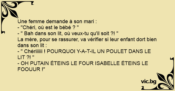 - " Chériiiiii ! POURQUOI Y-A-T-IL UN POULET DANS LE LIT ?! "