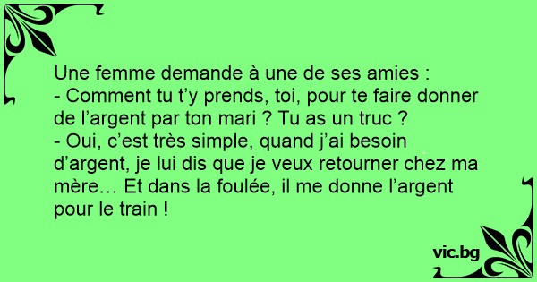 - Oui, c’est très simple, quand j’ai besoin d’argent, je lui dis que je veux retourner chez ma mère… Et dans la foulée, il me donne l’argent pour le train !