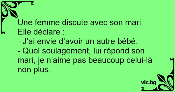 - Quel soulagement, lui répond son mari, je n’aime pas beaucoup celui-là non plus.