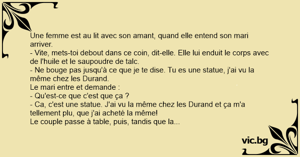 Une femme est au lit avec son amant, quand elle entend son mari arriver.