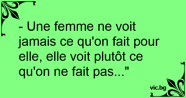 - Une femme ne voit jamais ce qu'on fait pour elle, elle voit plutôt ce qu'on ne fait pas..."