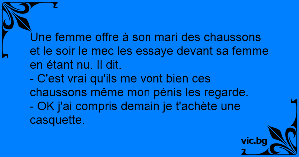Une femme offre à son mari des chaussons et le soir le mec les essaye devant sa femme en étant nu. Il dit.