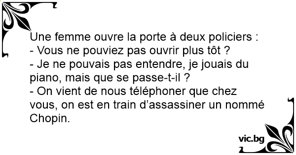 - On vient de nous téléphoner que chez vous, on est en train d’assassiner un nommé Chopin.