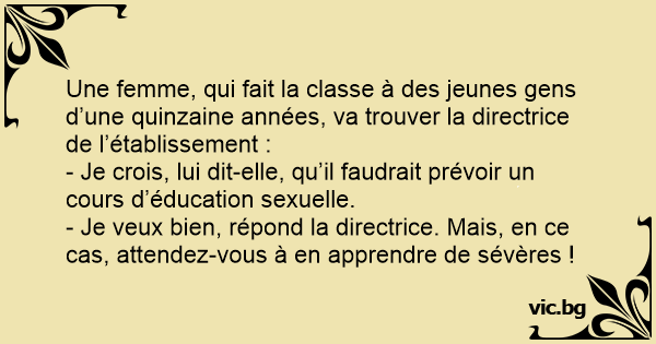 - Je veux bien, répond la directrice. Mais, en ce cas, attendez-vous à en apprendre de sévères !