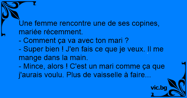 - Mince, alors ! C'est un mari comme ça que j'aurais voulu. Plus de vaisselle à faire...