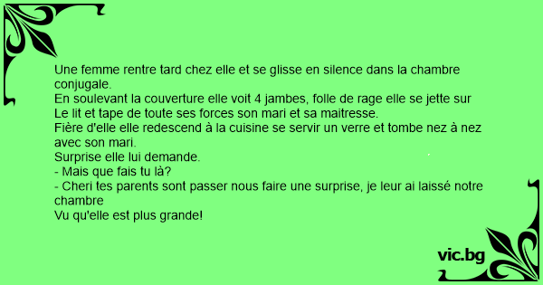 En soulevant la couverture elle voit 4 jambes, folle de rage elle se jette sur