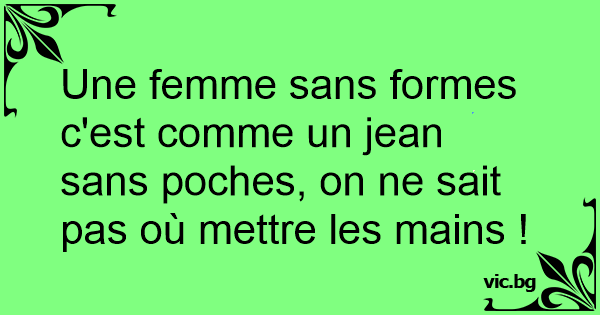 Une femme sans formes c'est comme un jean sans poches, on ne sait pas où mettre les mains !