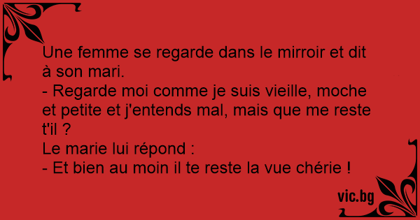 - Regarde moi comme je suis vieille, moche et petite et j'entends mal, mais que me reste t'il ?
