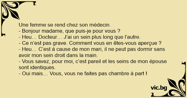 - Heu… Docteur… J’ai un sein plus long que l’autre.