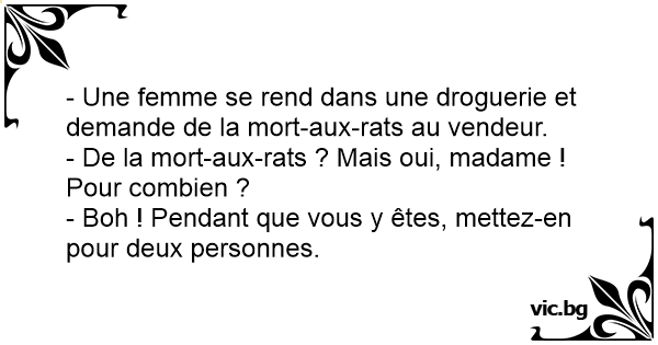 - Une femme se rend dans une droguerie et demande de la mort-aux-rats au vendeur.