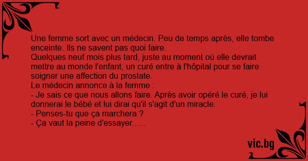 Quelques neuf mois plus таrd, juste au moment où elle devrait mettre au monde l'enfant, un curé entre à l'hôpital pour se faire soigner une affection du prostate.
