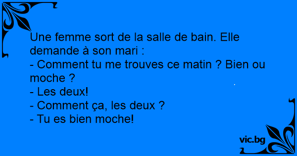 Une femme sort de la salle de bain. Elle demande à son mari :