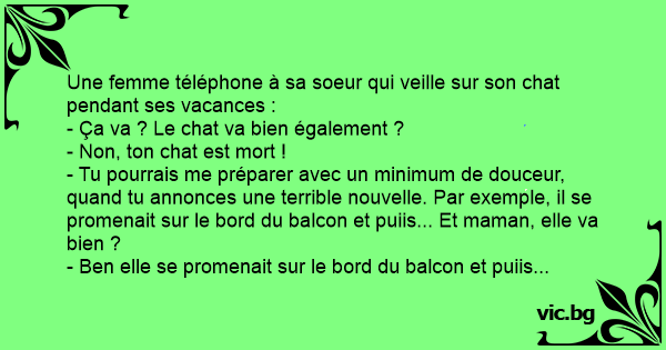 Une femme téléphone à sa soeur qui veille sur son chat pendant ses vacances :