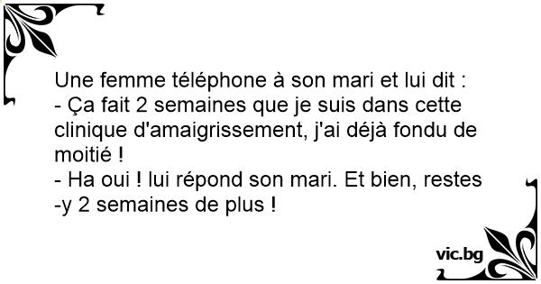 - Ha oui ! lui répond son mari. Et bien, restes-y 2 semaines de plus !