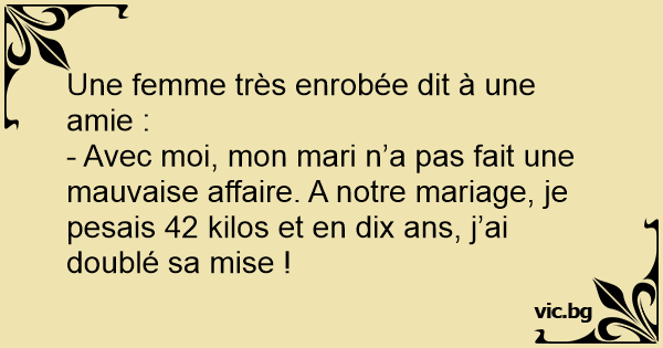 - Avec moi, mon mari n’a pas fait une mauvaise affaire. A notre mariage, je pesais 42 kilos et en dix ans, j’ai doublé sa mise !