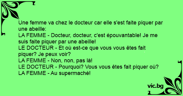 LA FEMME - Docteur, docteur, c'est épouvantable! Je me suis faite piquer par une abeille!