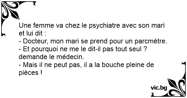 - Docteur, mon mari se prend pour un parcmètre.