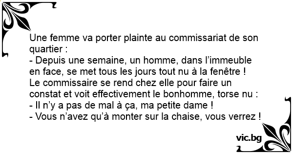 - Depuis une semaine, un homme, dans l’immeuble en face, se met tous les jours tout nu à la fenêtre !